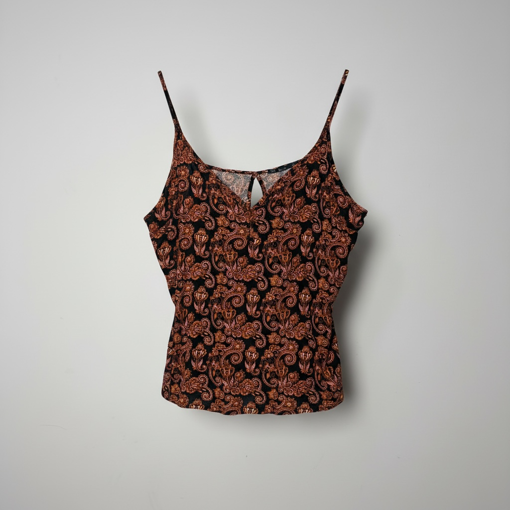 Top casual con estampado paisley, ideal para un look relajado y versátil. Perfecto para combinar con jeans o shorts.
