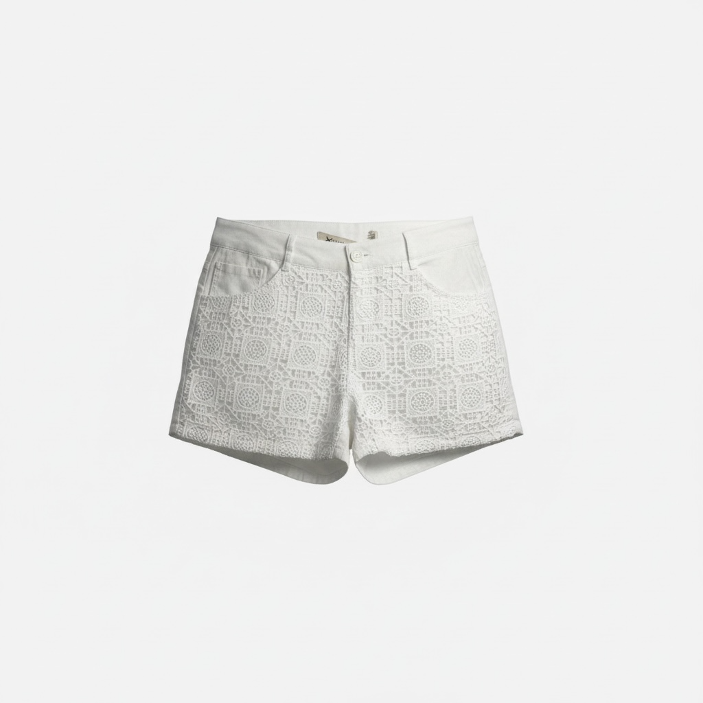Shorts de encaje blanco, perfectos para un look fresco y veraniego. Ideal para combinar con tops coloridos.