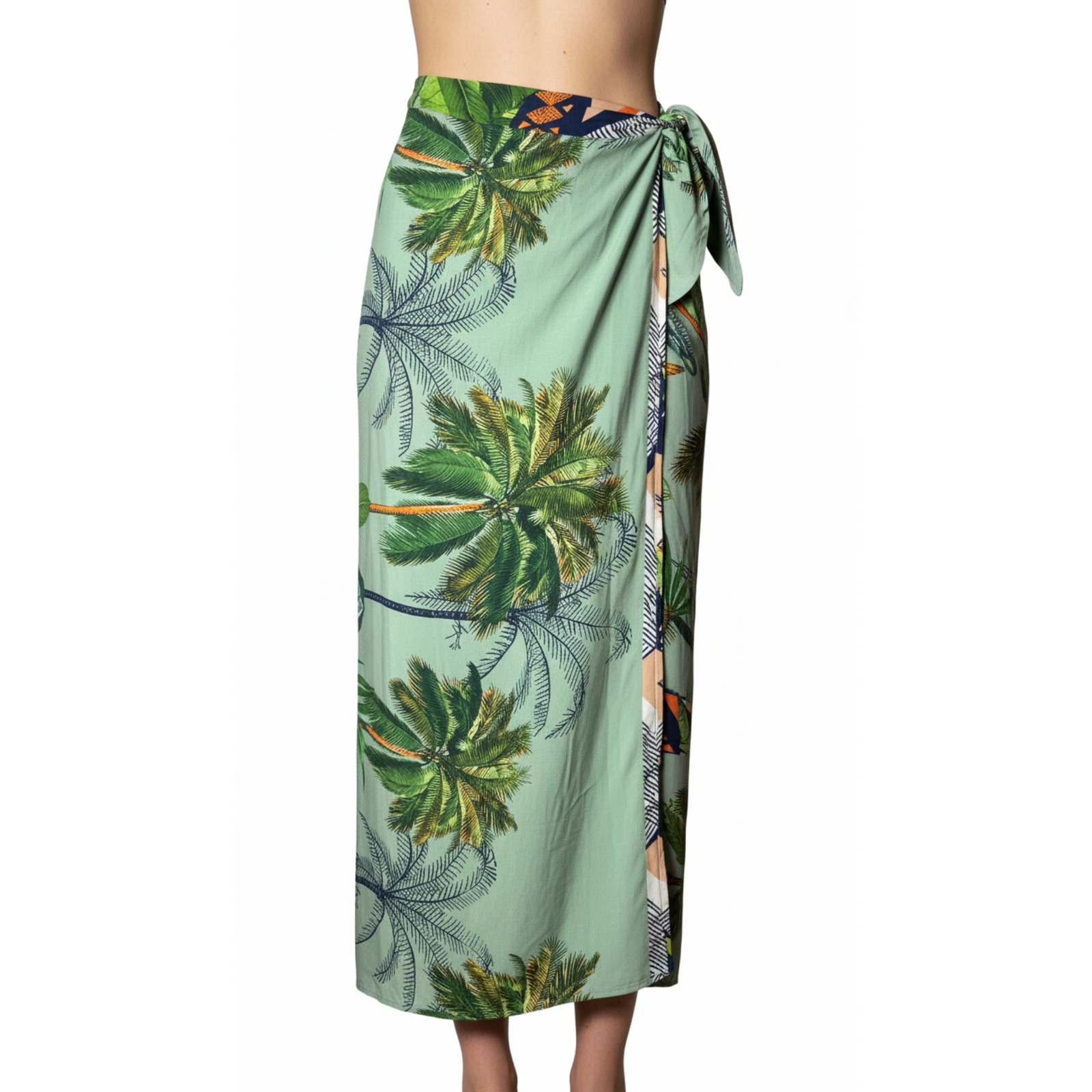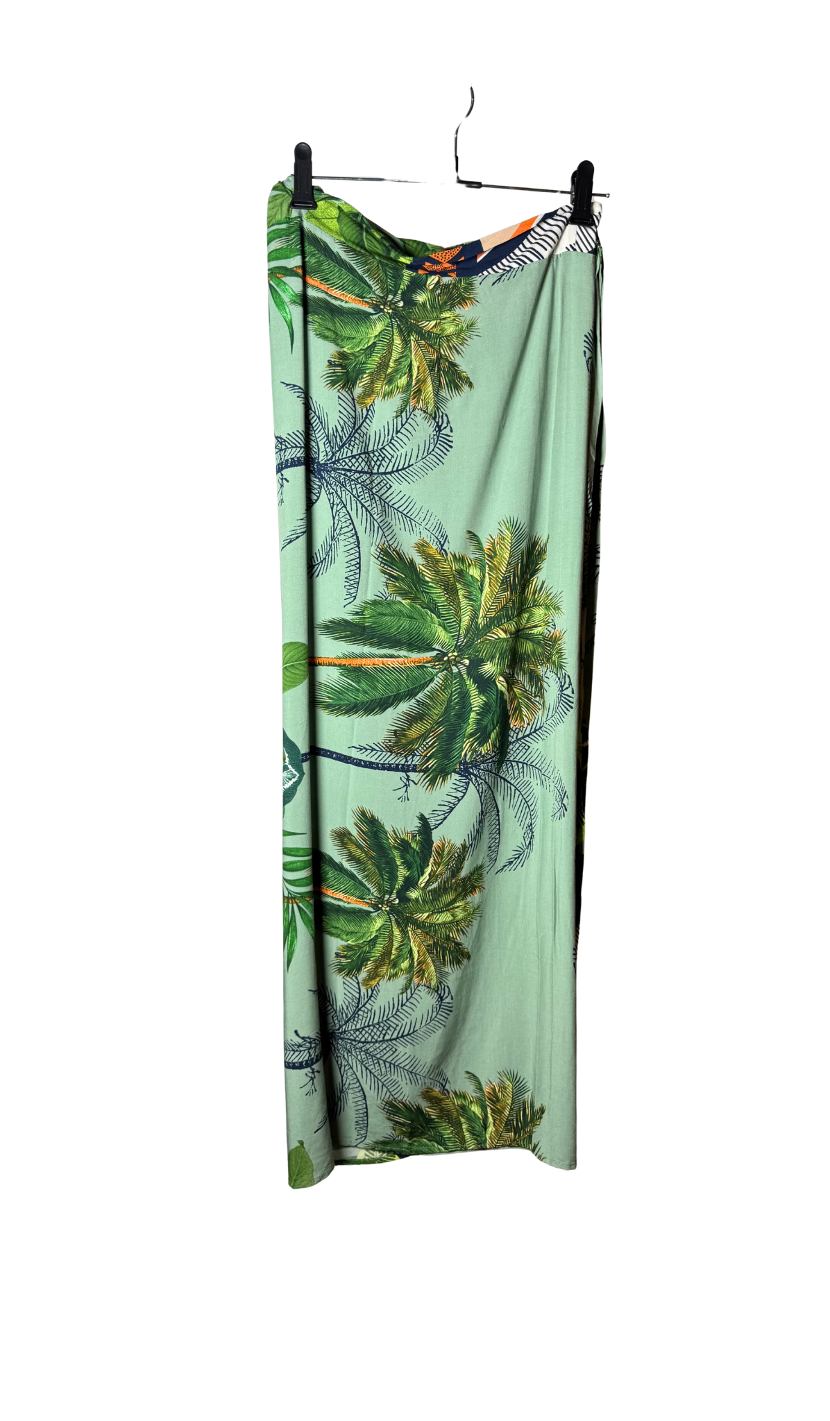 Falda envolvente ligero y fresco de Kenja, ideal para el verano, la playa o piscina. Confeccionado en 100% viscosa con un vibrante estampado tropical. Como nuevo!