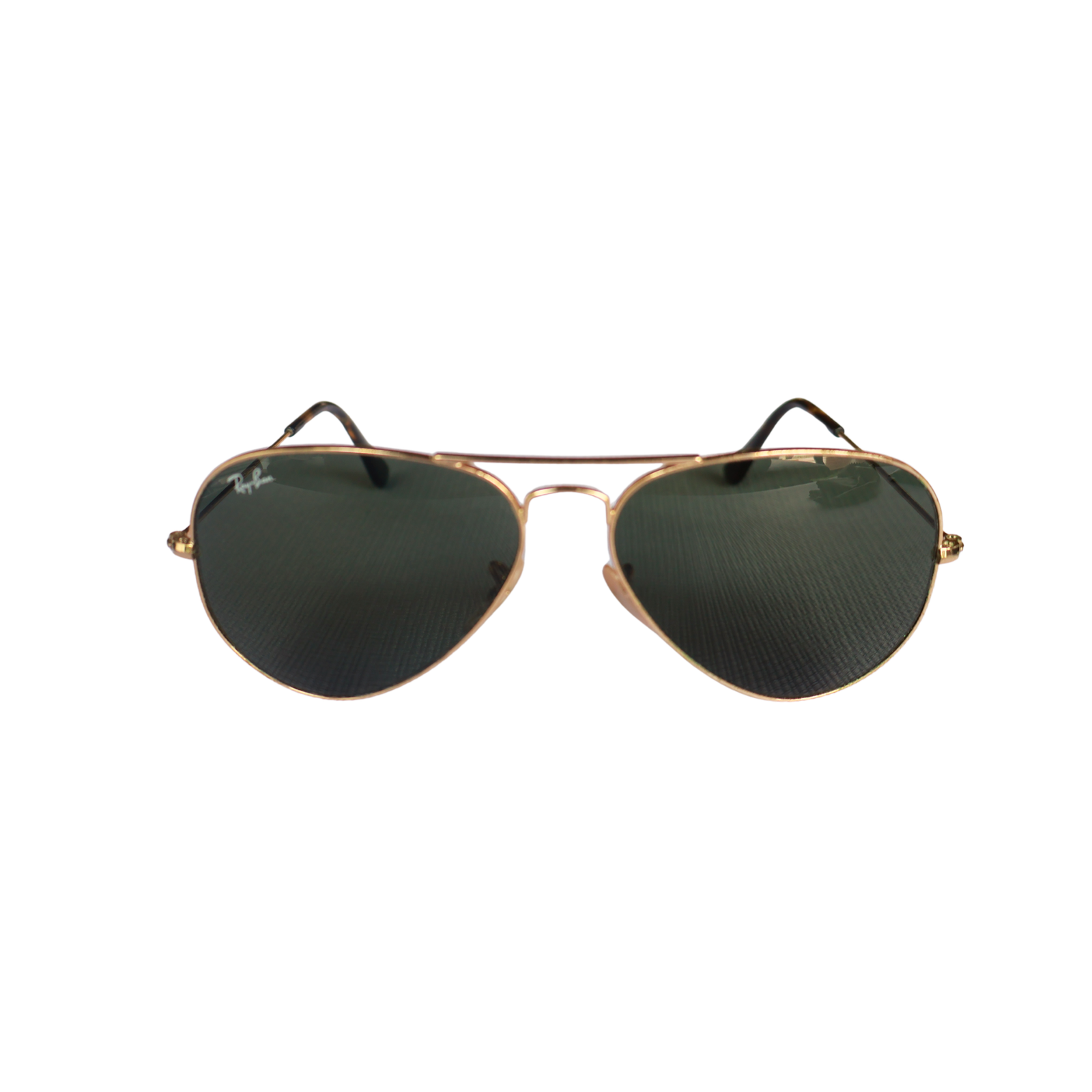 Los clásicos Ray-Ban Aviator que nunca pasan de moda. Con montura de metal dorada y cristales verdes de alta protección, son el accesorio definitivo para un look sofisticado y atemporal. Se encuentran en excelente estado, conservando su brillo y calidad original.