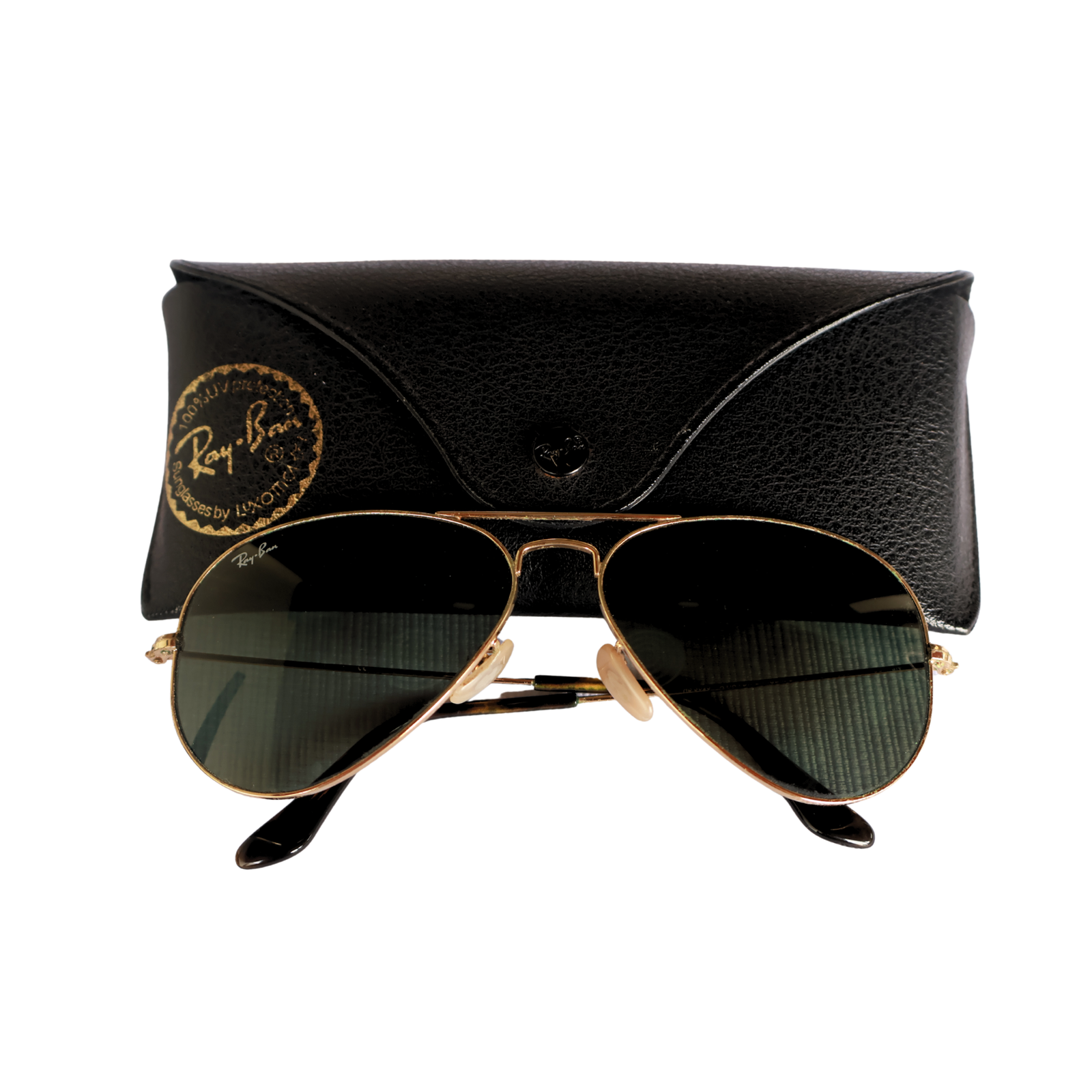 Icónicos lentes Aviator con montura dorada y lunas verdes G-15. Incluye estuche original.