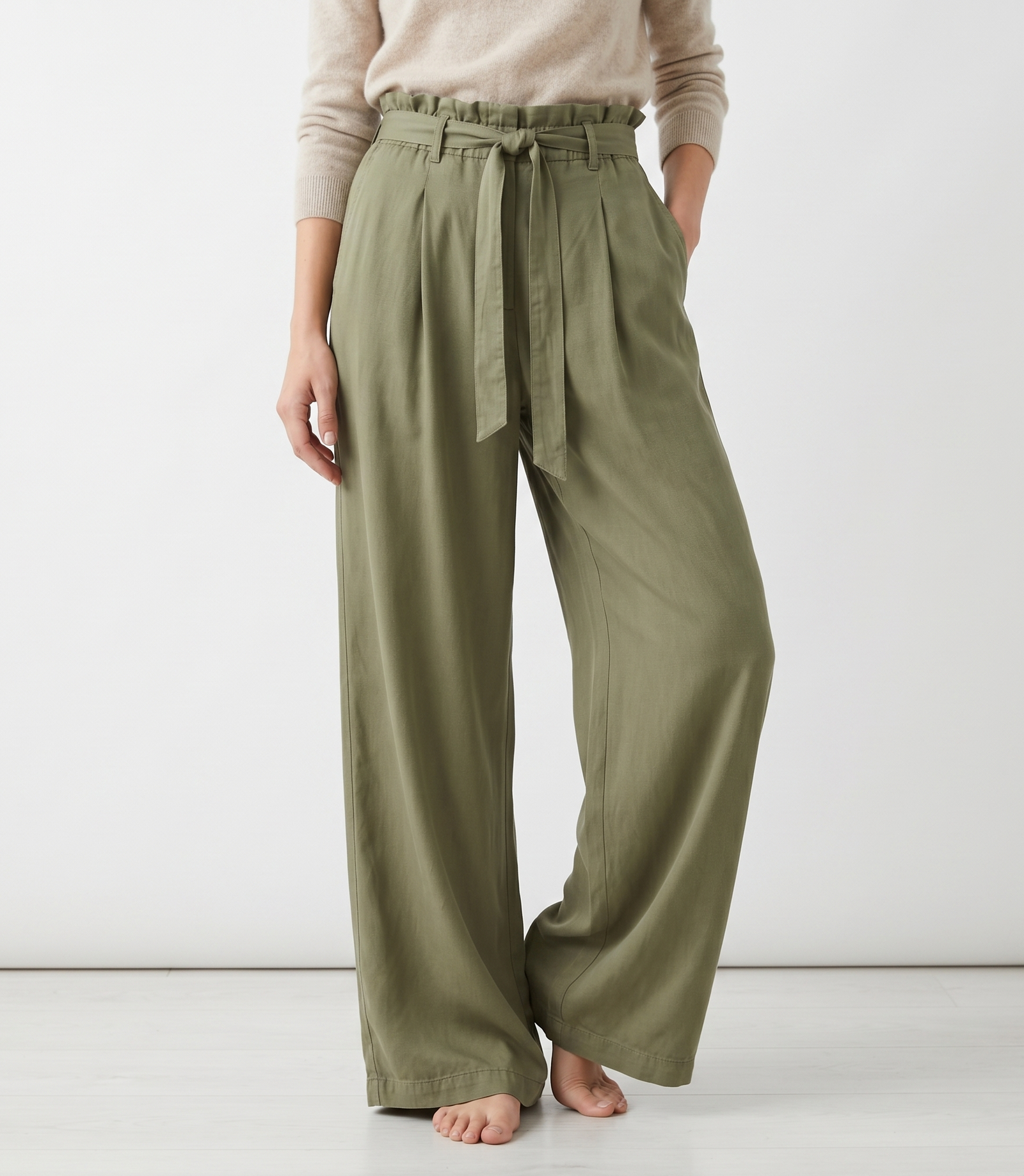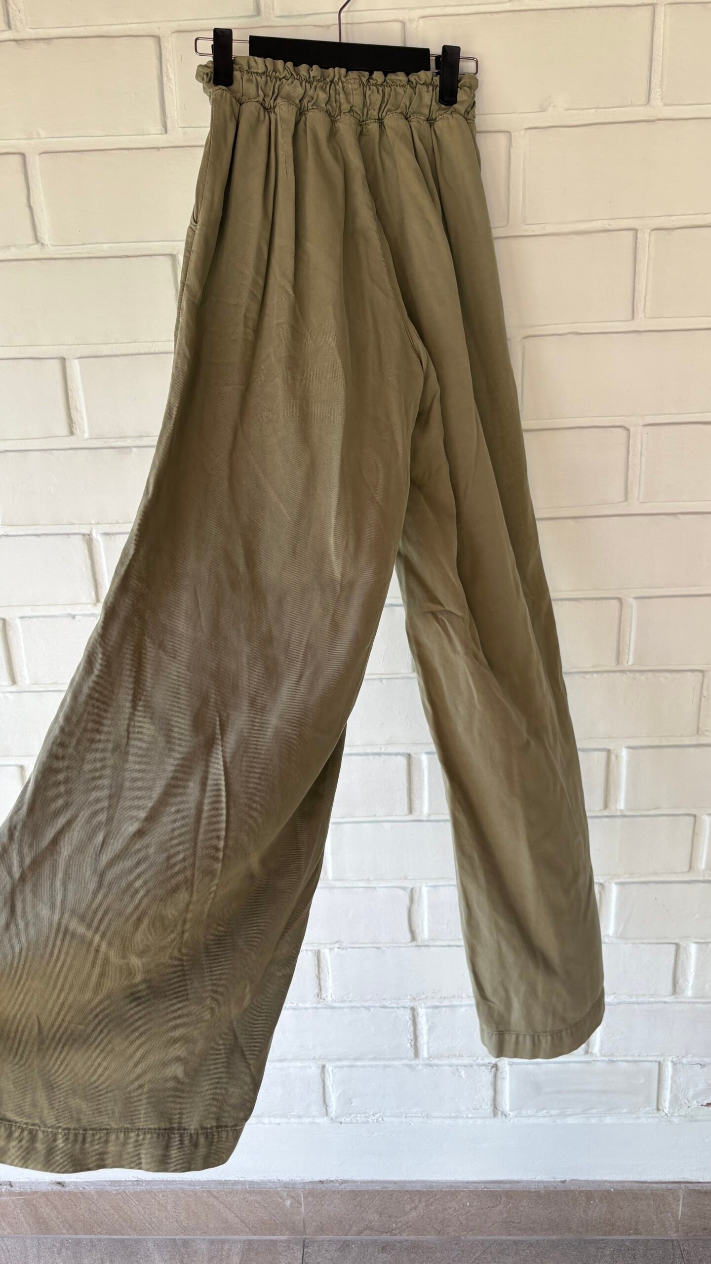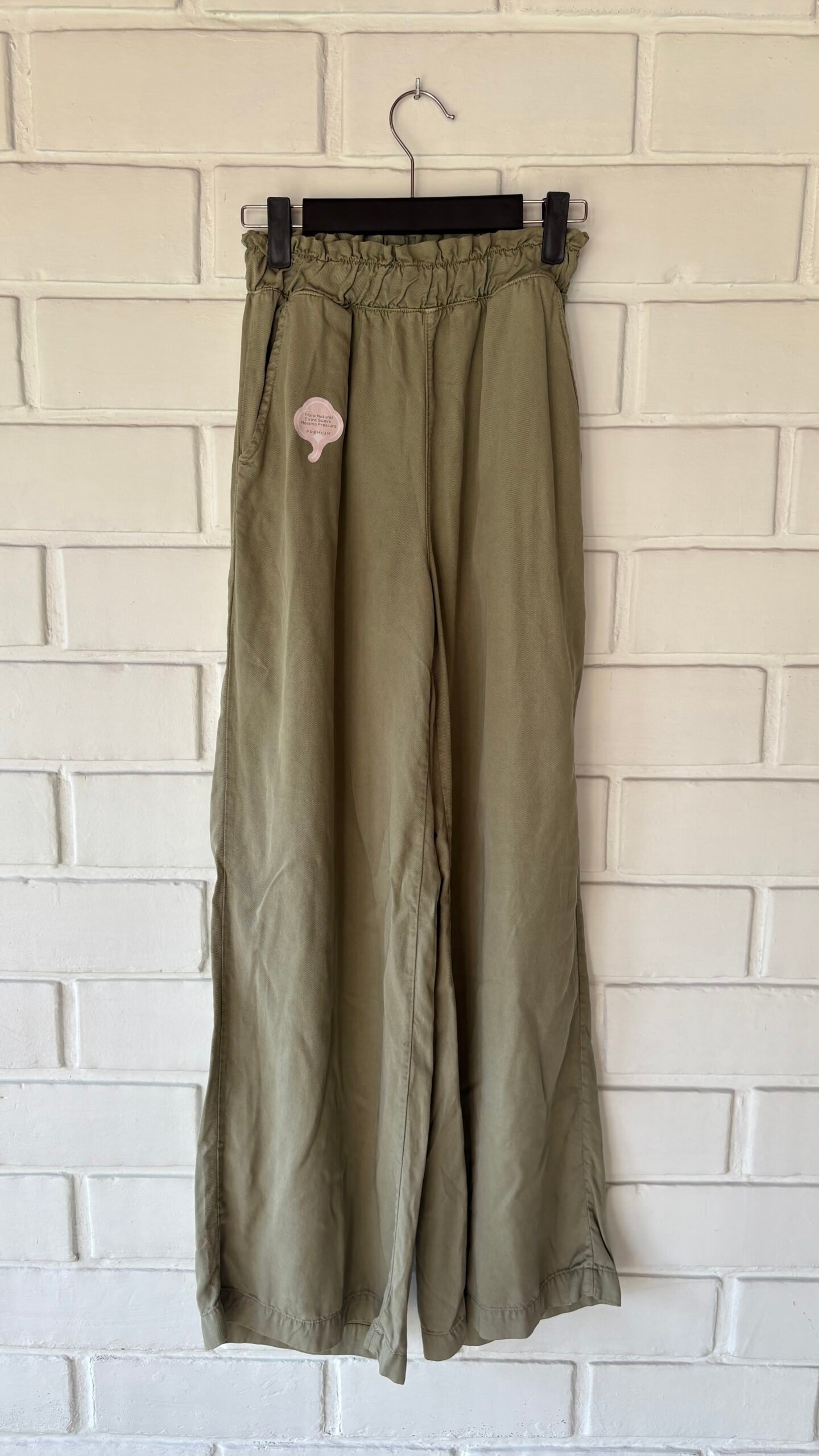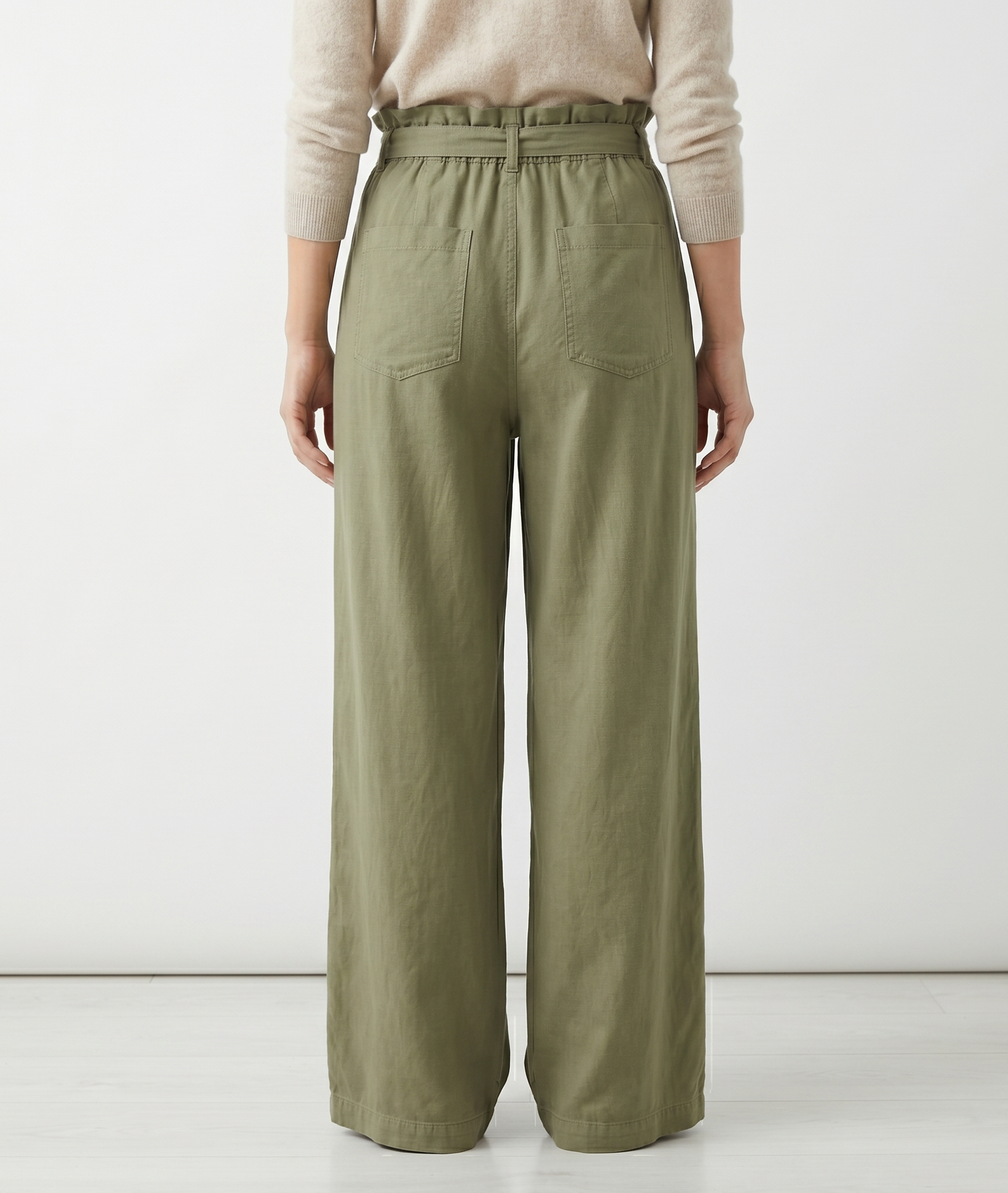 Este pantalón de la marca local Lagom destaca por su corte wide leg y cintura elástica tipo paperbag que estiliza la figura. Su color verde olivo es versátil para cualquier estación, ofreciendo comodidad sin perder el estilo minimalista que caracteriza a la marca.