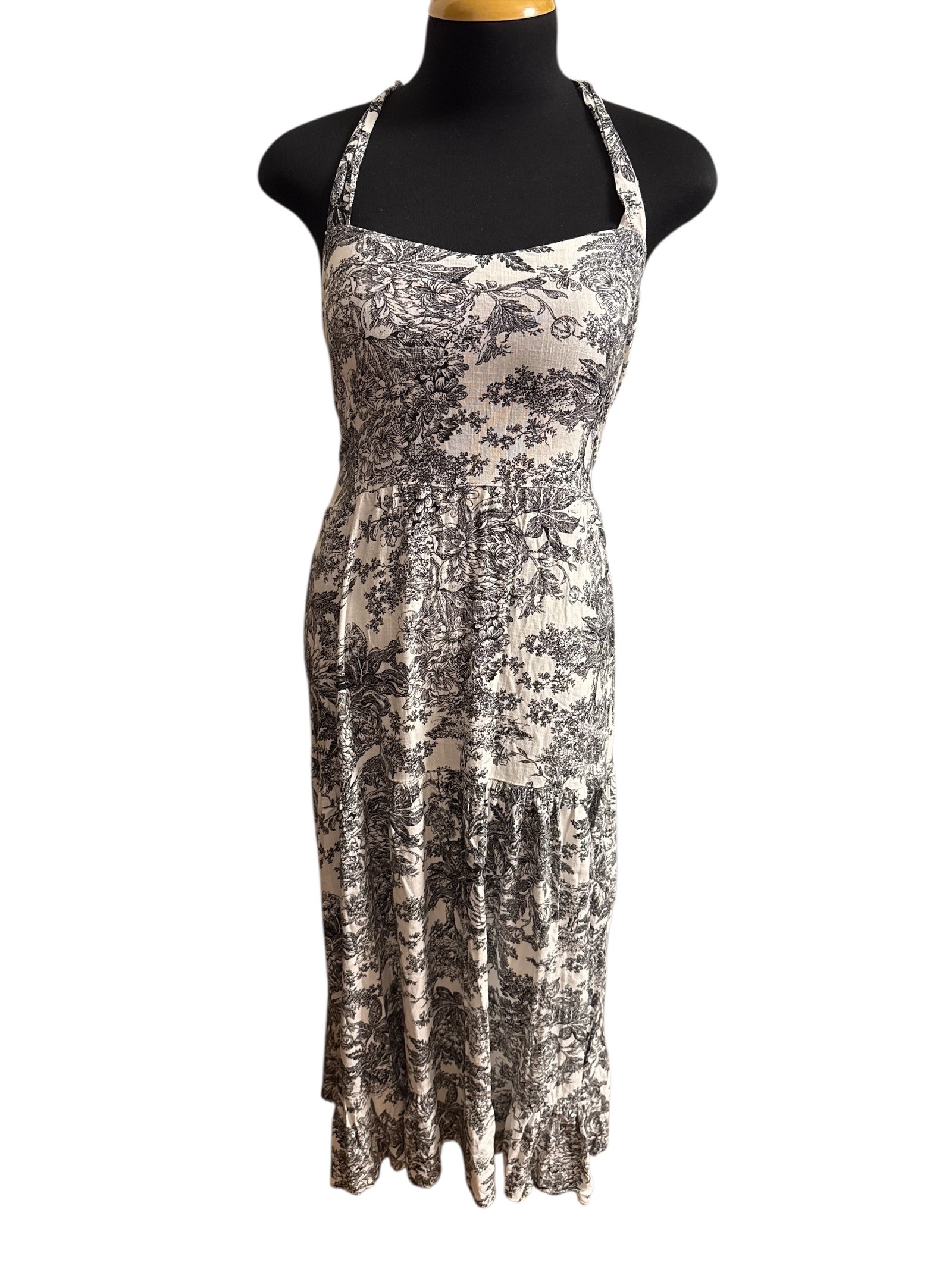 Vestido blanco con flores negras talla S/M