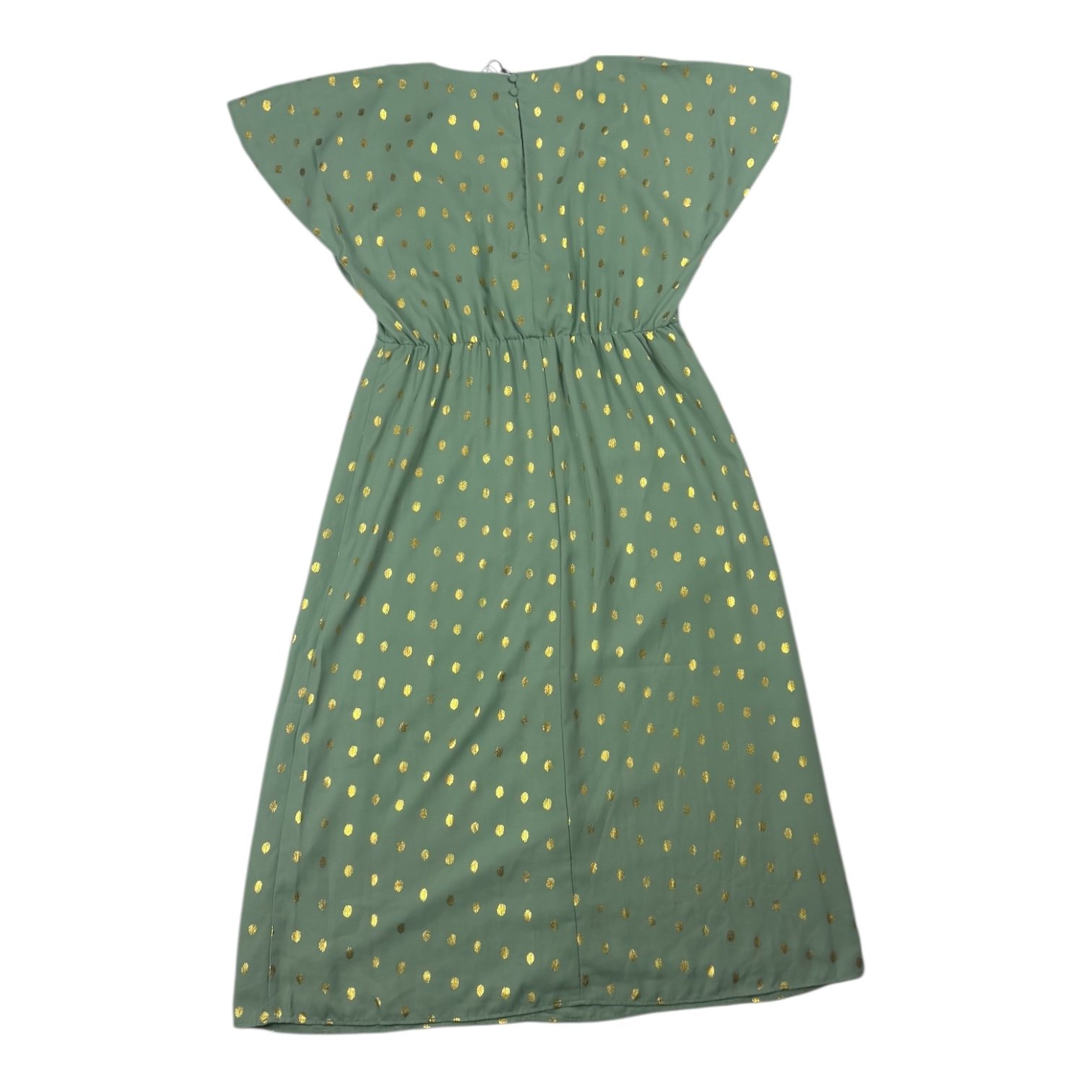Vestido midi verde con lunares dorados. Femenino y elegante.