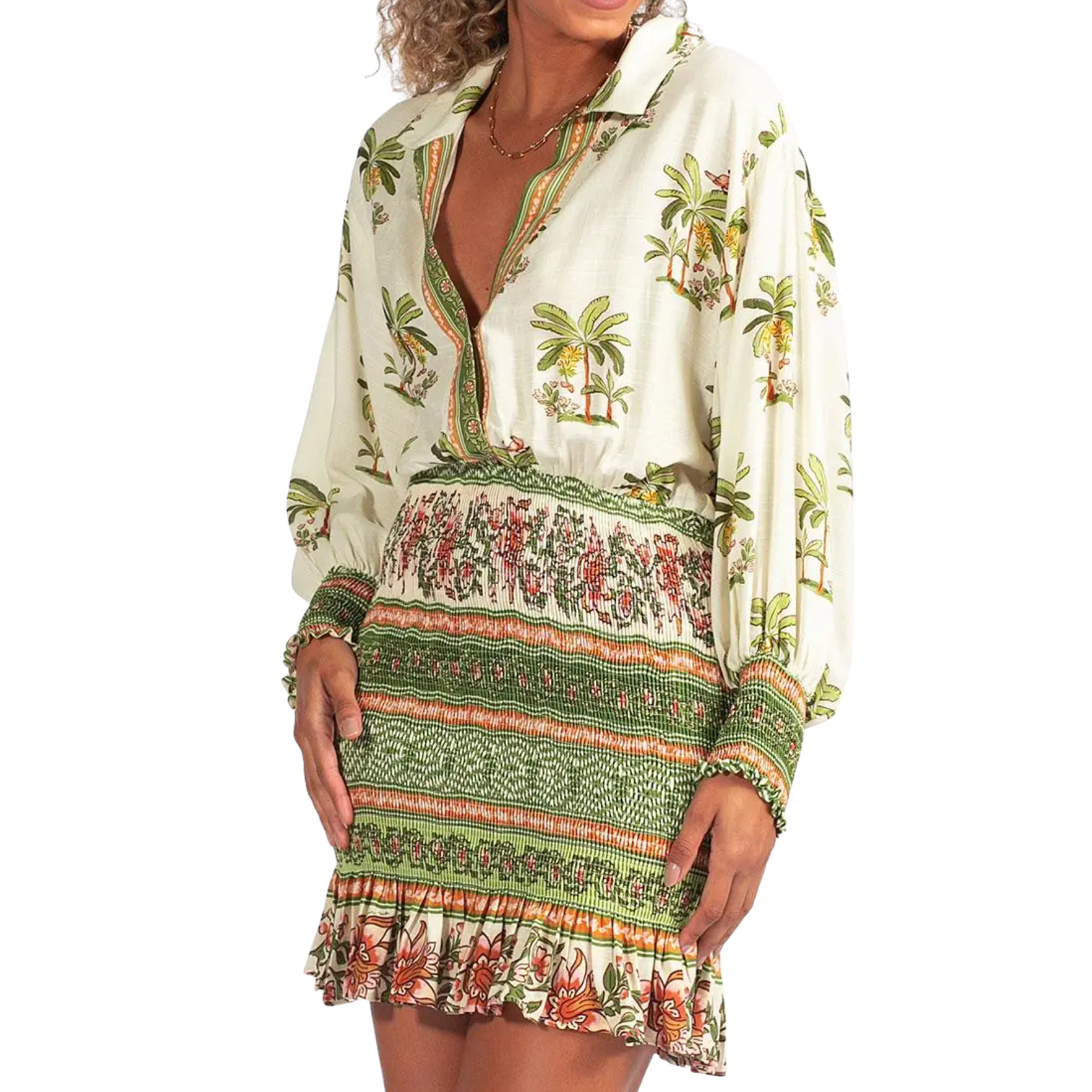 Vestido corto con estampas verdes y flores Farm Rio – M